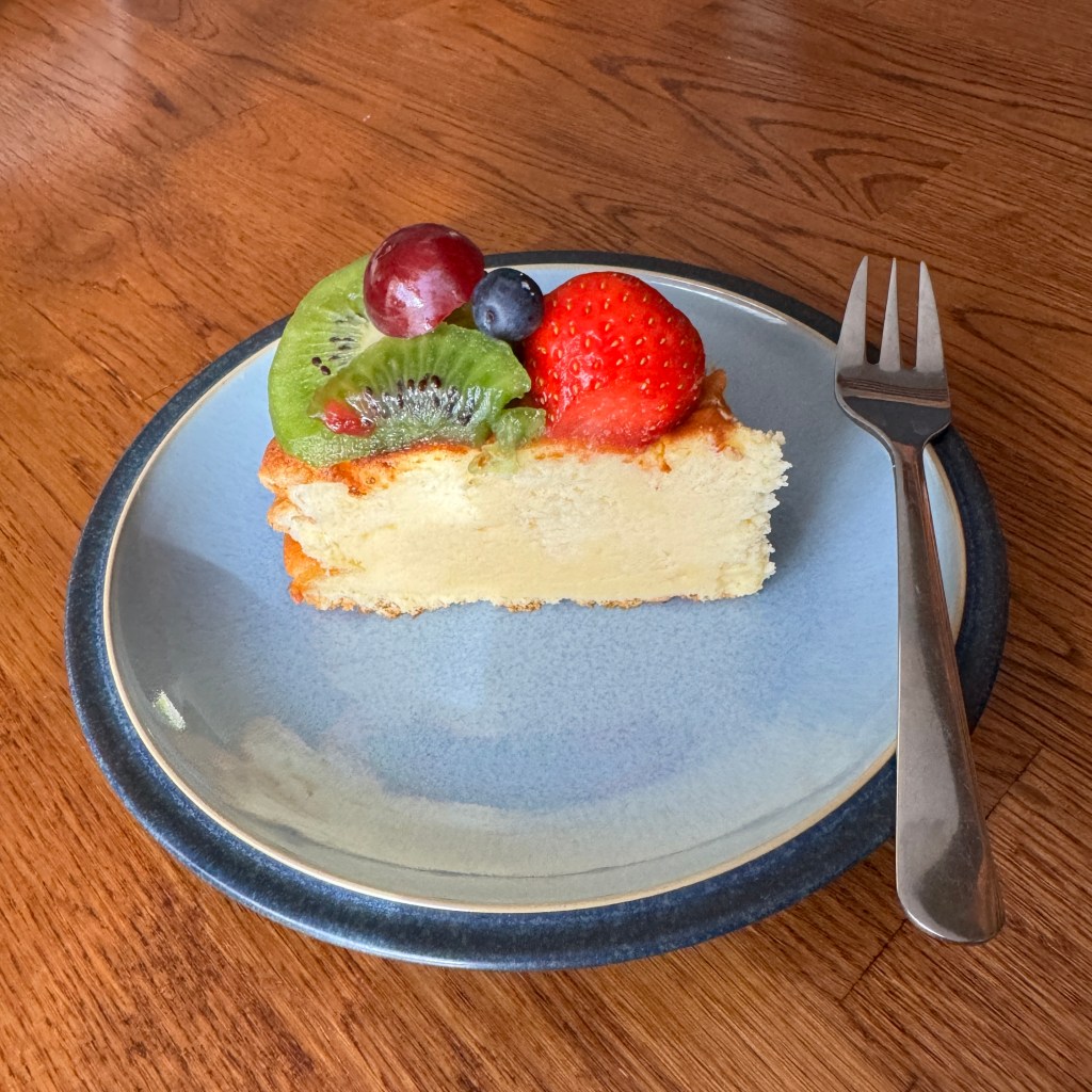 - Garnish with slices of fresh fruit or a dusting of icing sugar, slice and serve.